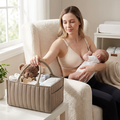 Der er plads til alt, både drikkelse, snacks, ammeindlæg, lanolincreme, ammelampe, AirPods, stofbleer og alt andet som du ikke kan undvære i de timer du bruger sammen med din baby ved amningen.