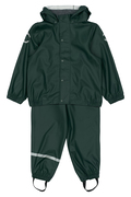 Mikk-lines klassiske PU-regntøjssæt med seler. Dette regntøjssæt er lavet af vandtæt stof af 100% genanvendt PU-materiale, og det er designet til, at børn kan have det sjovt i regnen, hoppe vandpytter, glide ned ad den våde rutsjebane, lege i den våde sandkasse osv.